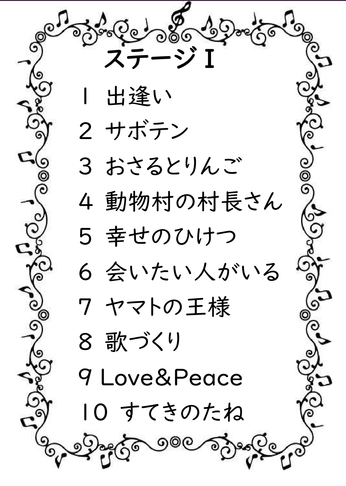 01 GENKIパラダイス.mp3 02 のんびり歩こう.mp3 03 空はいいよな.mp3 04 耳をすませて.mp3 05 サボテン.mp3 06 おさるとリンゴ.mp3 07 ひよこのさんぽ.mp3 08 キツネ印のミラクル変身ショップ.mp3 09 動物村の村長さん.mp3 10 ベジタブル・ファイブ.mp3 11 大きな窓の下で.mp3 12 バラの花束.mp3