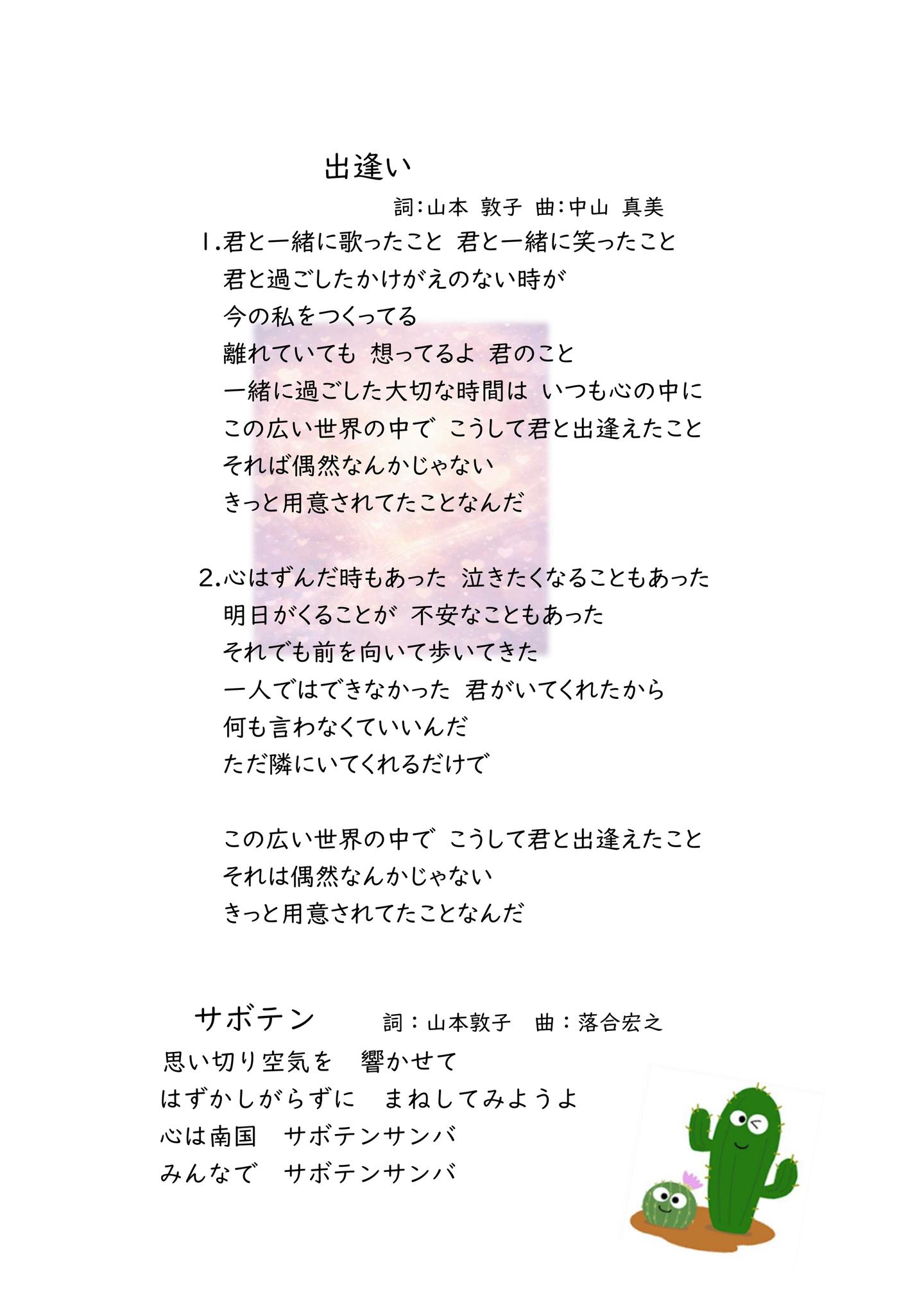 01 GENKIパラダイス.mp3 02 のんびり歩こう.mp3 03 空はいいよな.mp3 04 耳をすませて.mp3 05 サボテン.mp3 06 おさるとリンゴ.mp3 07 ひよこのさんぽ.mp3 08 キツネ印のミラクル変身ショップ.mp3 09 動物村の村長さん.mp3 10 ベジタブル・ファイブ.mp3 11 大きな窓の下で.mp3 12 バラの花束.mp3